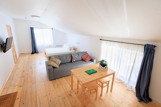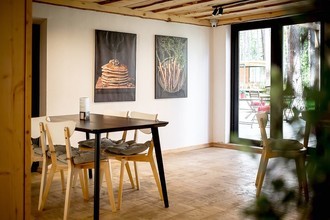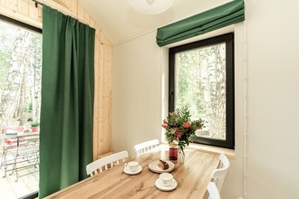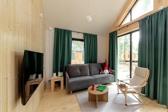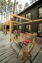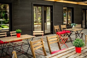 На территории есть всё для отличного отдыха. Переночевать вам предложат в комфортабельном эко-отеле. Вы можете выбрать номер категории Эконом, Эконом+, Стандарт, Комфорт или Апартаменты. Питание предусмотрено в уютном ресторане "Лес". Здесь несколько залов и летняя веранда. Меню заведения предлагает гостям изысканные угощения, приготовленные профессиональными поварами из местных продуктов. В барной карте представлены алкогольные и безалкогольные напитки на любой вкус.