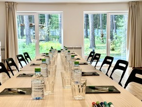 Для деловых мероприятий можно арендовать конференц-зал (площадью 49 кв.м или 140 кв.м) с комфортной мебелью, проектором, экраном и флипчартом, а в перерыве устроить кофе-брейк в ресторане или под открытым небом.